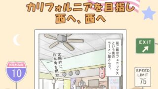 アメリカ6,000kmロードトリップ アメリカの国立公園をめぐる6,000kmロードトリップの記録④ 【カリフォルニアを目指し、西へ西へ】 アメリカ南西部の国立公園を9日間でぐるっと回った旅の記録。第4回は、ニューメキシコ州のモーテルを出発し、アリゾナ州を横断し、カリフォルニアに到達したお話。2日間、移動に費やした我々。それでも見える景色は明らかに日本とは違ったのでした。デミン... 2025.10.09 アメリカ6,000kmロードトリップ旅マンガエッセイ